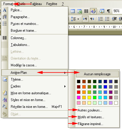 - Aller dans le menu: Format / Arrière-Plan / ...