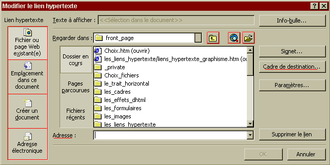 plusieurs façons de définir un lien hypertexte pour un graphisme.